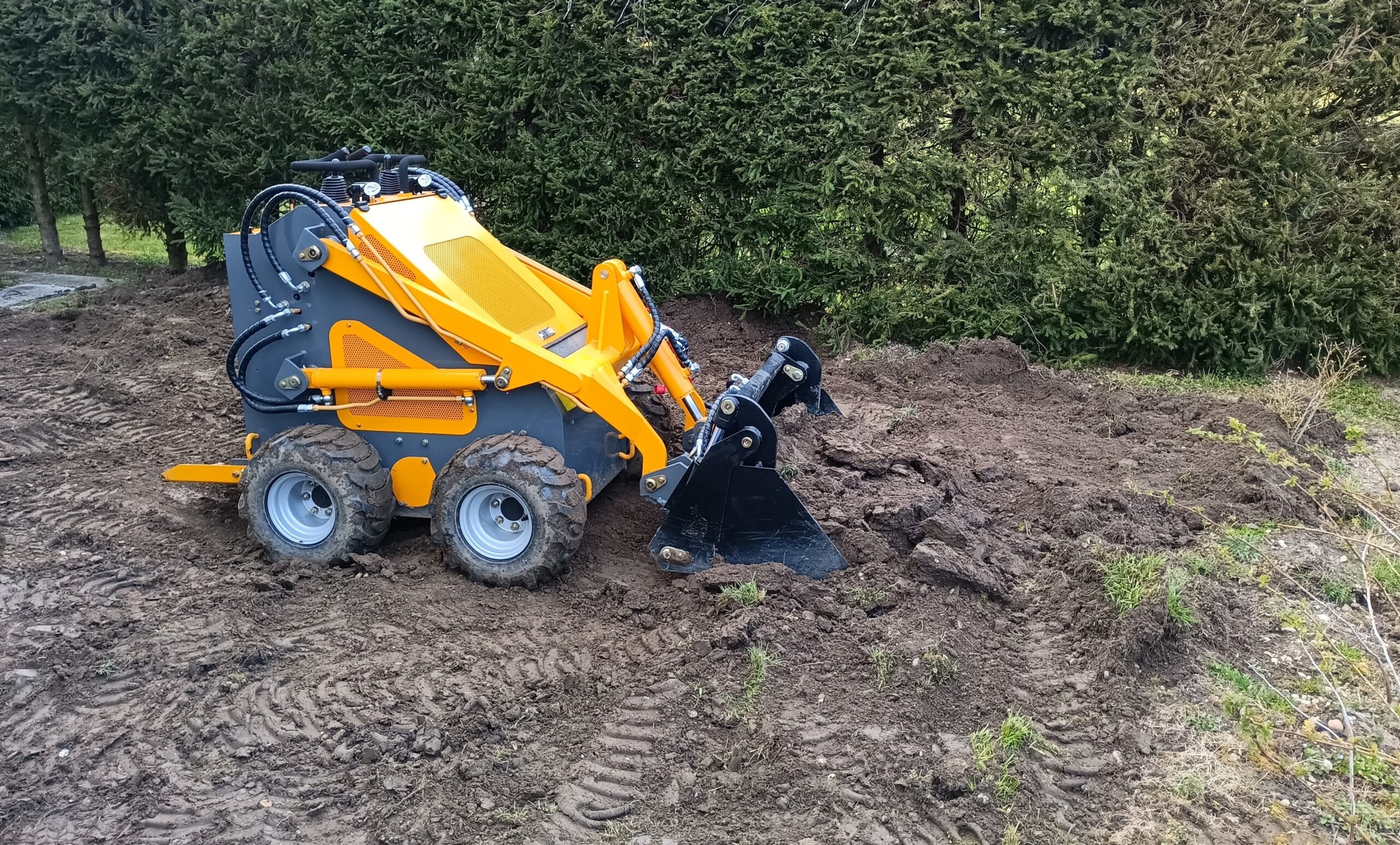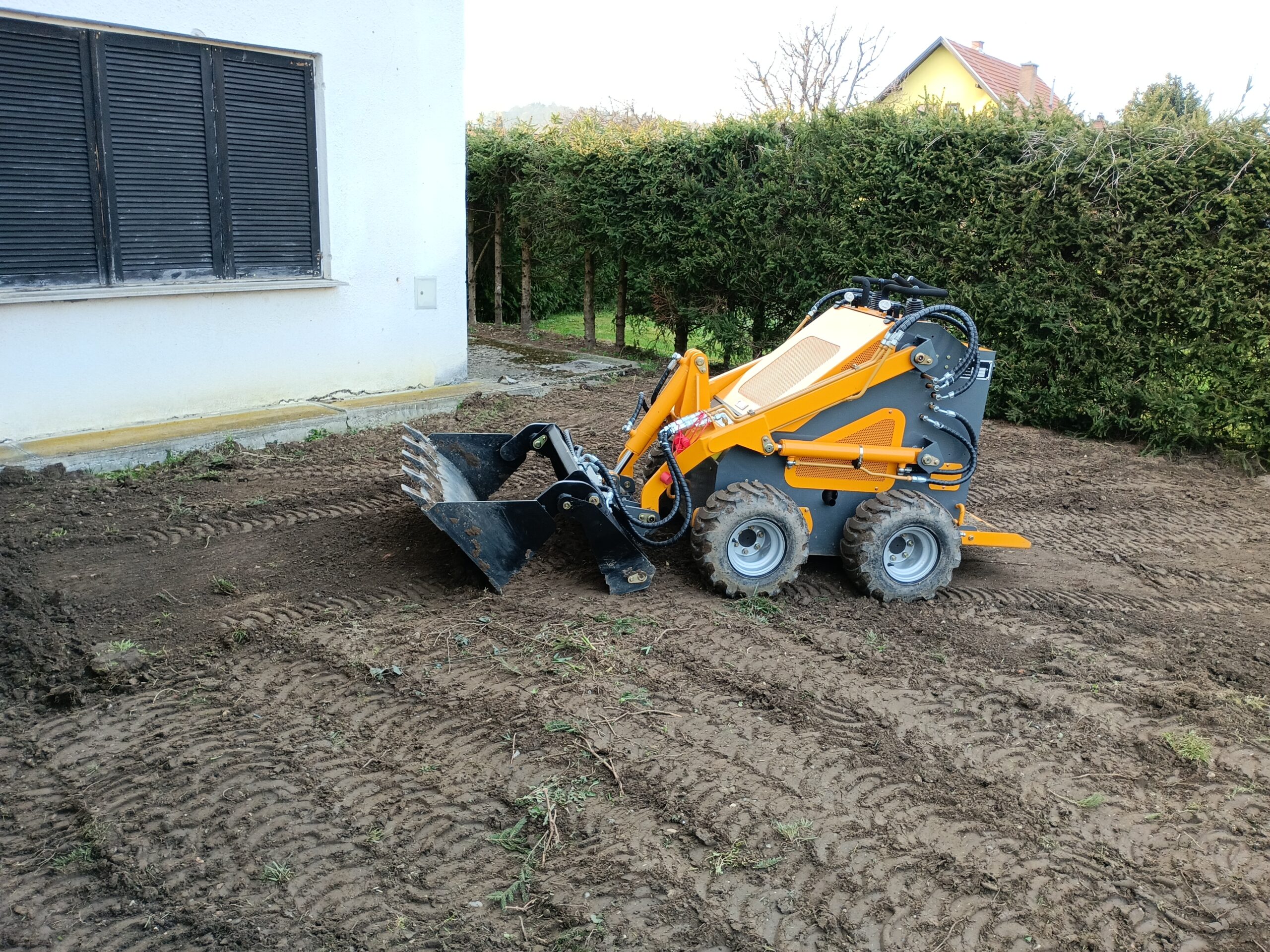 Našim strankam nudimo storitve manjših zemeljskih del urejanja okolice objektov ali izvedbo manjših gradbenih projektov z kompaktnim minibagerjem širine 120cm in teže 1200kg. Posebnost stroja nudi panoramski 360 stopinjski vidni kot, kar mu omogoča delo na ozkih terenih. Stroj je zelo produktiven na manjših projektih, tam kjer z velikim strojem ni dostopa ali pa bi povzročil preveč škode na podlagi terena.