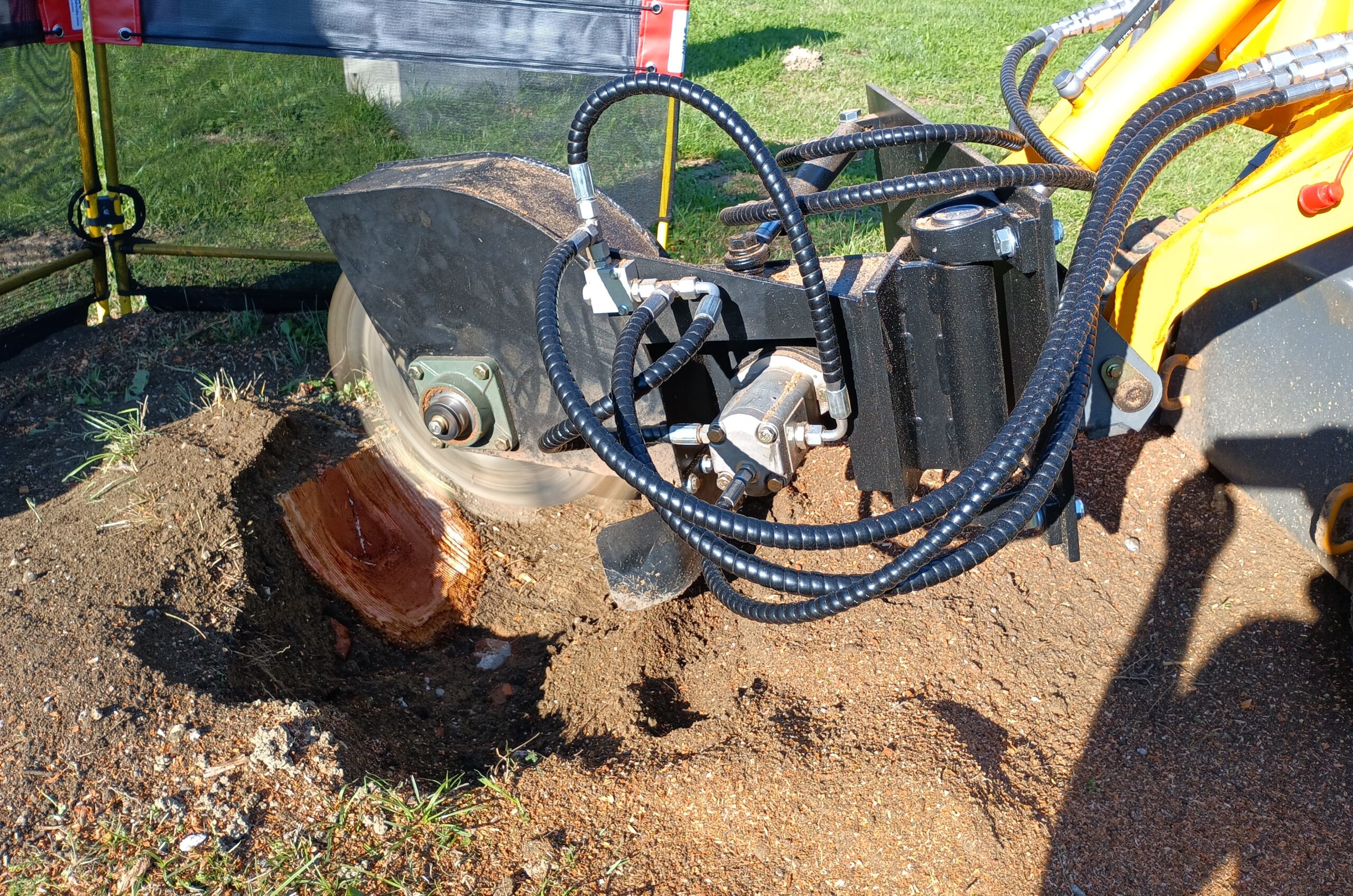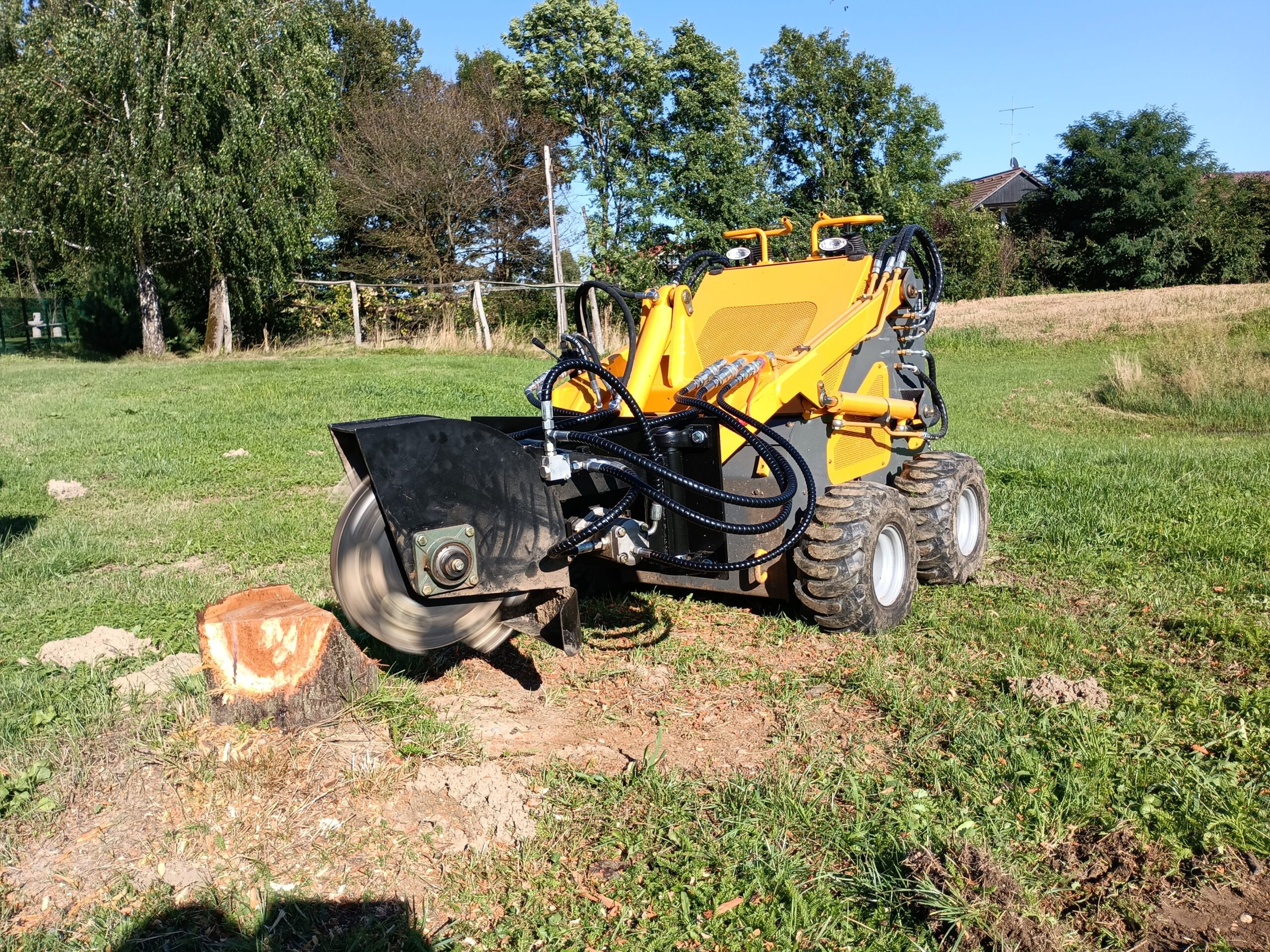 Odstranitev štora z frezanjem je idealna rešitev za tiste, ki želijo rešiti težavo brez težkega bagra na urejeni zelenici. po frezanju ostane globine cca. 25cm in kup žagovine pomešane z zemljo.