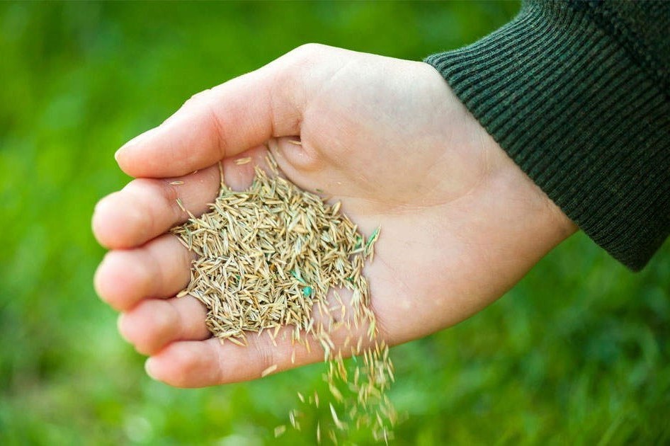 Z ročnim sejalnikom, posejemo in pognojimo bodočo zelenico.